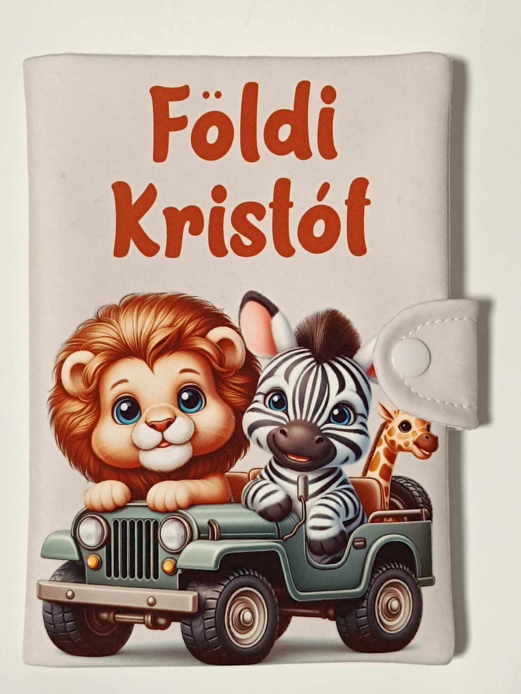 Safari mintás textil egészségügyi kiskönyv borító – egyedi, névre szóló kézműves ajándék